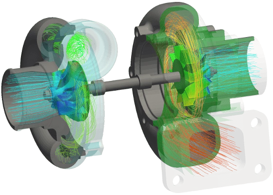 Steady-state and transient flow Laminar and turbulent flows Incompressible, compressible – subsonic, transonic, supersonic flow Rotating or stationary frame of reference Conjugate heat transfer Radiation Newtonian and non-Newtonian fluids User-defined equations and species transport Fluid structure interaction Fluid pressures and temperatures transferred to structural analysis Heat flux and temperatures transferred to thermal analysis
